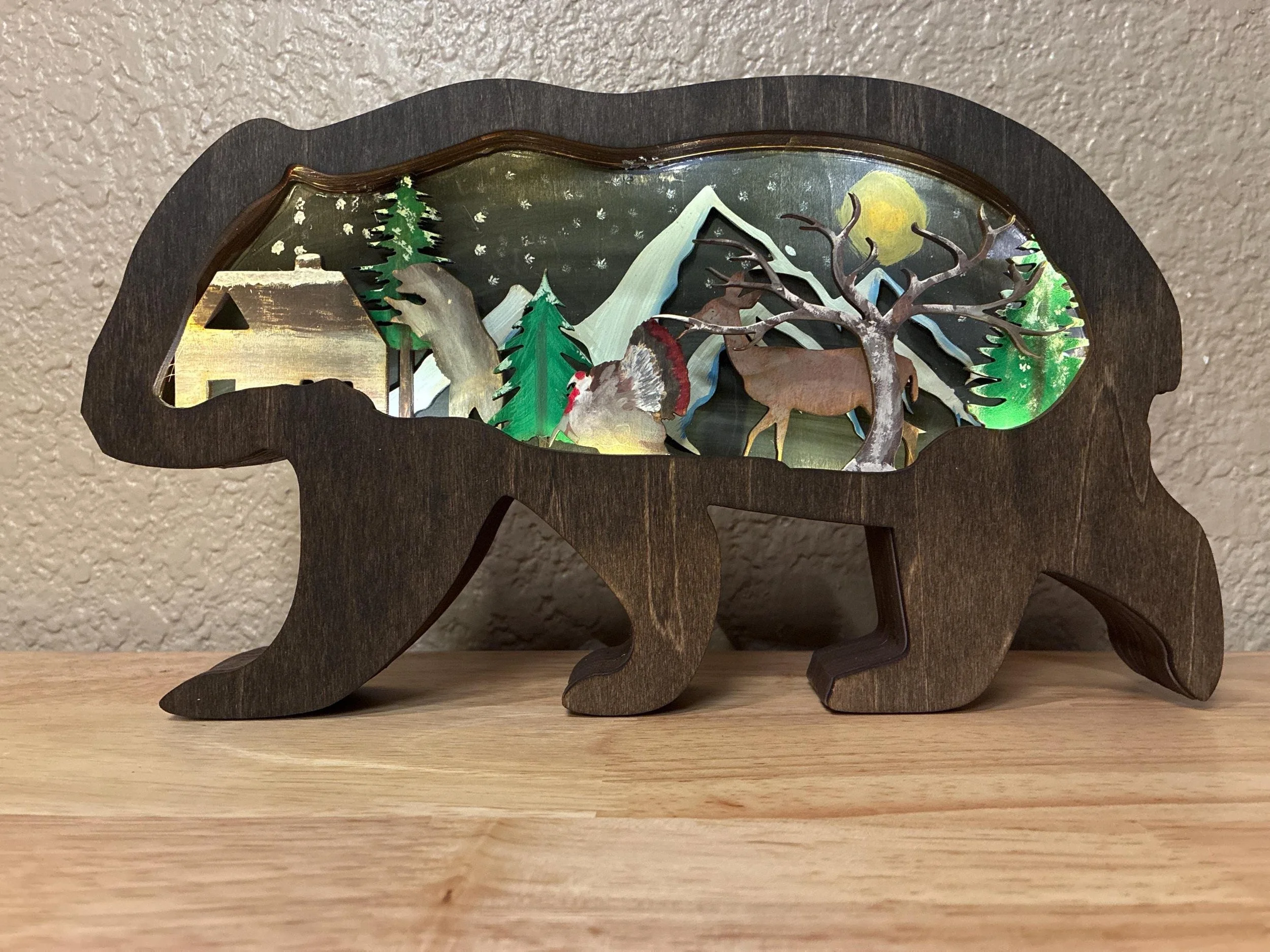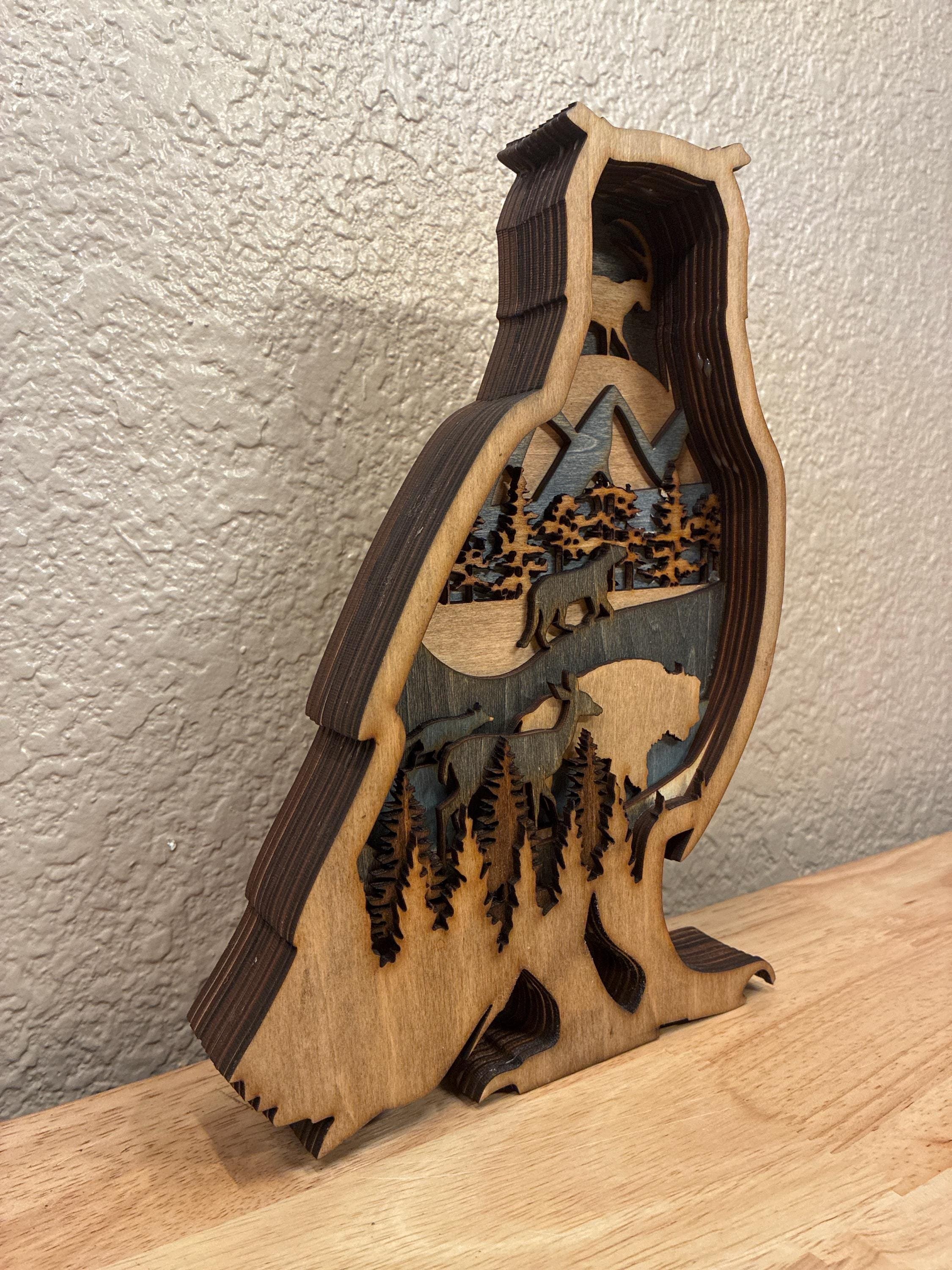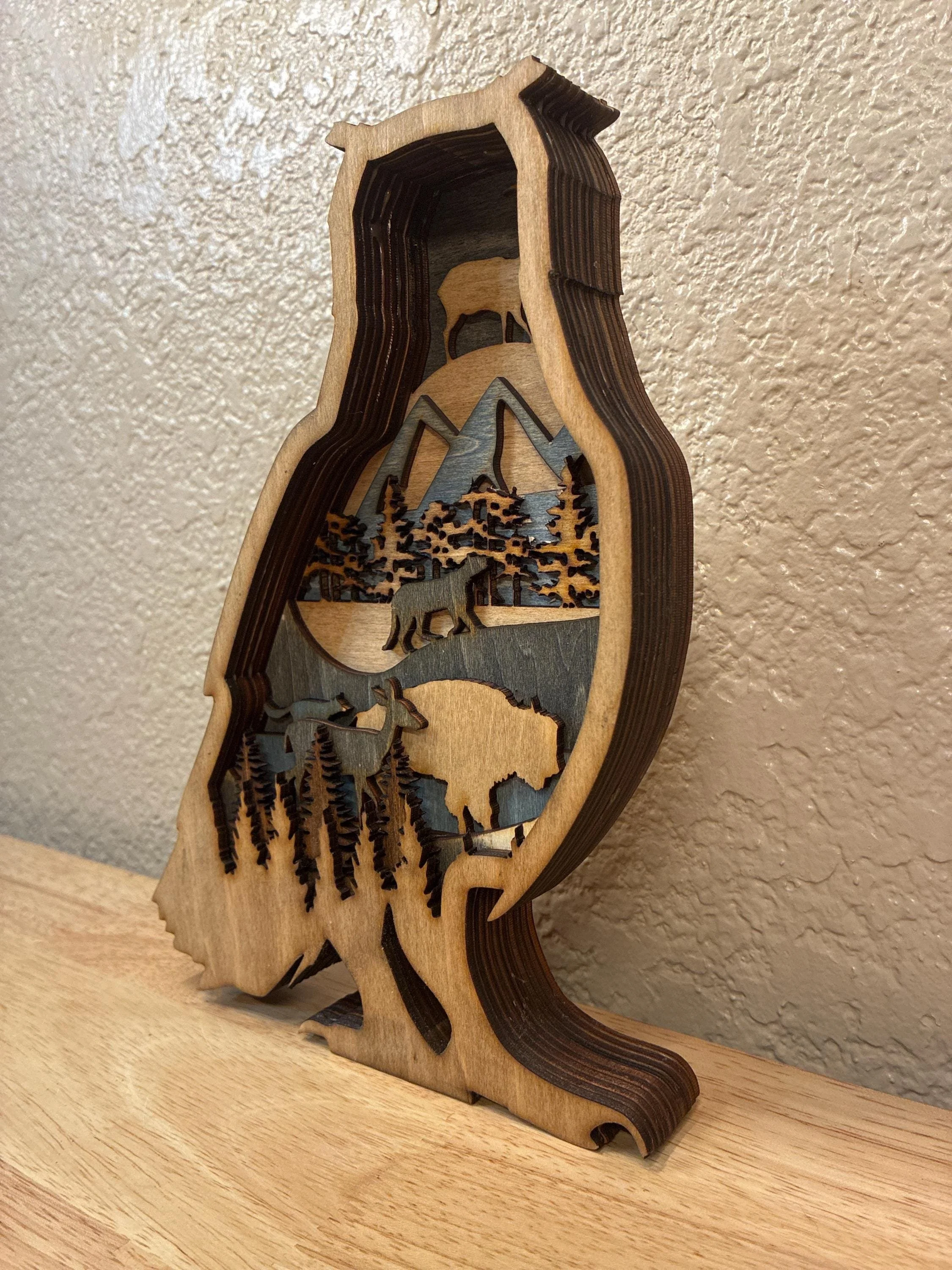 Shop Categories: All 3D Art All | 3D Art | Santa Claus Sale Price: $55.00 Original Price: $85.00 Sale Gift Card from $25.00 Bring nature indoors with this lighted 3D handcrafted bear $85.00 Sold out A Safari in Every Layer – 3D Elephant Wood Art $85.00 Bring the wilds indoors with this 3D handcrafted bison $85.00 Bring nature indoors with this lighted 3D handcrafted bear $85.00 Nativity scene, Christmas tree, laser cut 3D handcrafted $100.00 Bring the wilds indoors with this 3D handcrafted owl $85.00 Sold out Handcrafted 3D Layered Wood Pig – Rustic Farmhouse Wall Art $85.00 Handcrafted 3D Layered Wood Goat – Rustic Farmhouse Wall Art $85.00 3 piece Christmas Tree nativity set $175.00 Bring nature indoors with this 3D handcrafted bear Sale Price: $55.00 Original Price: $85.00 Sale 3D Layered Owl $85.00