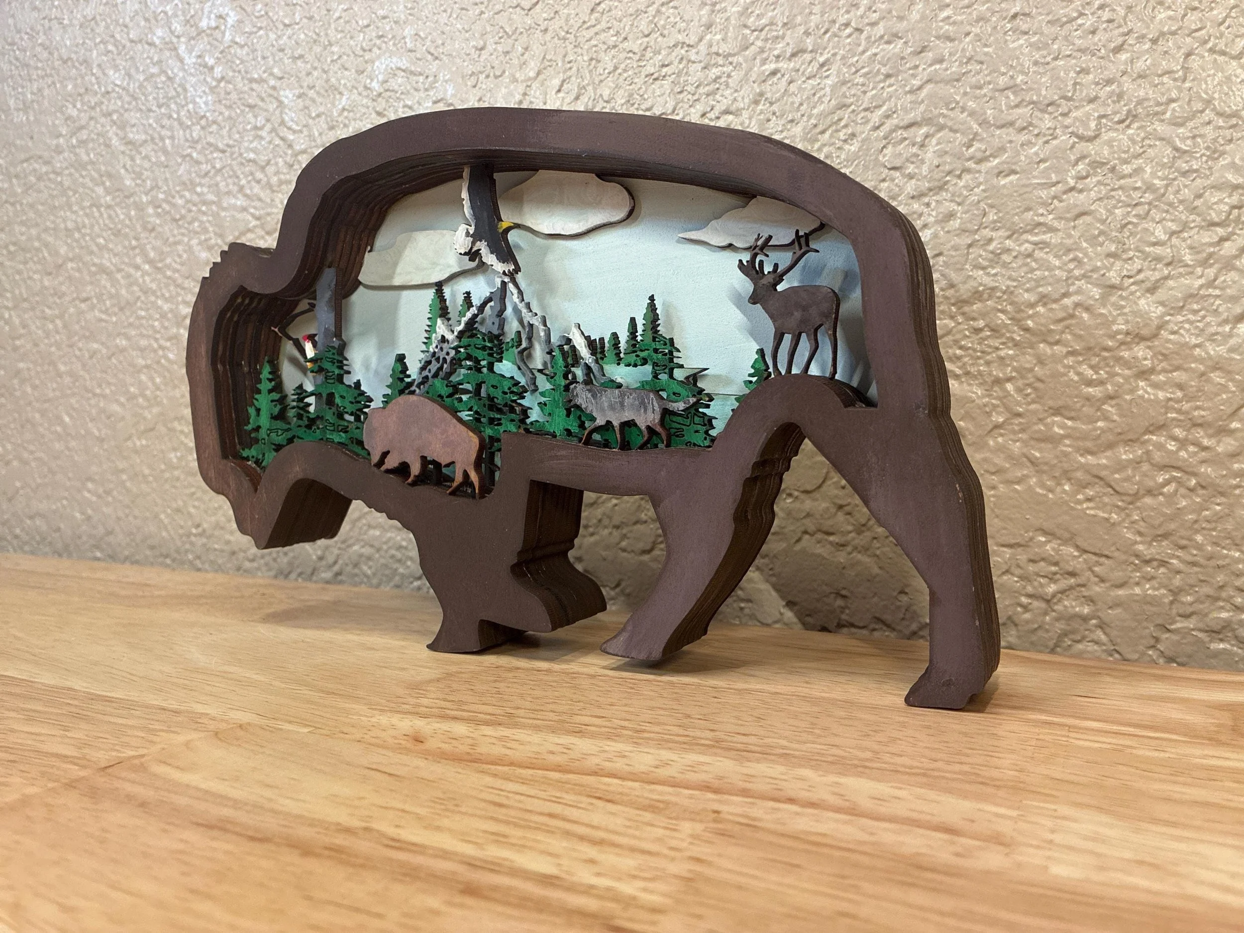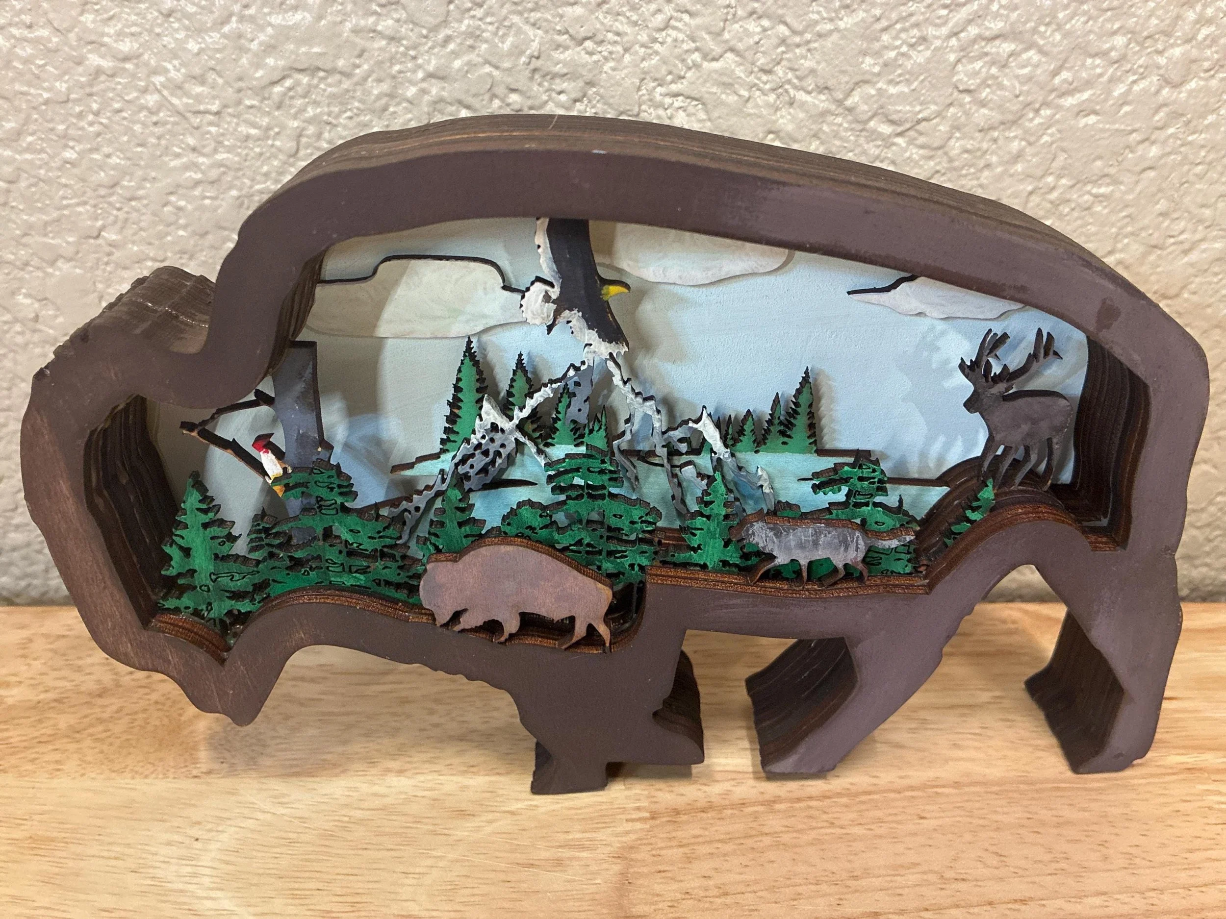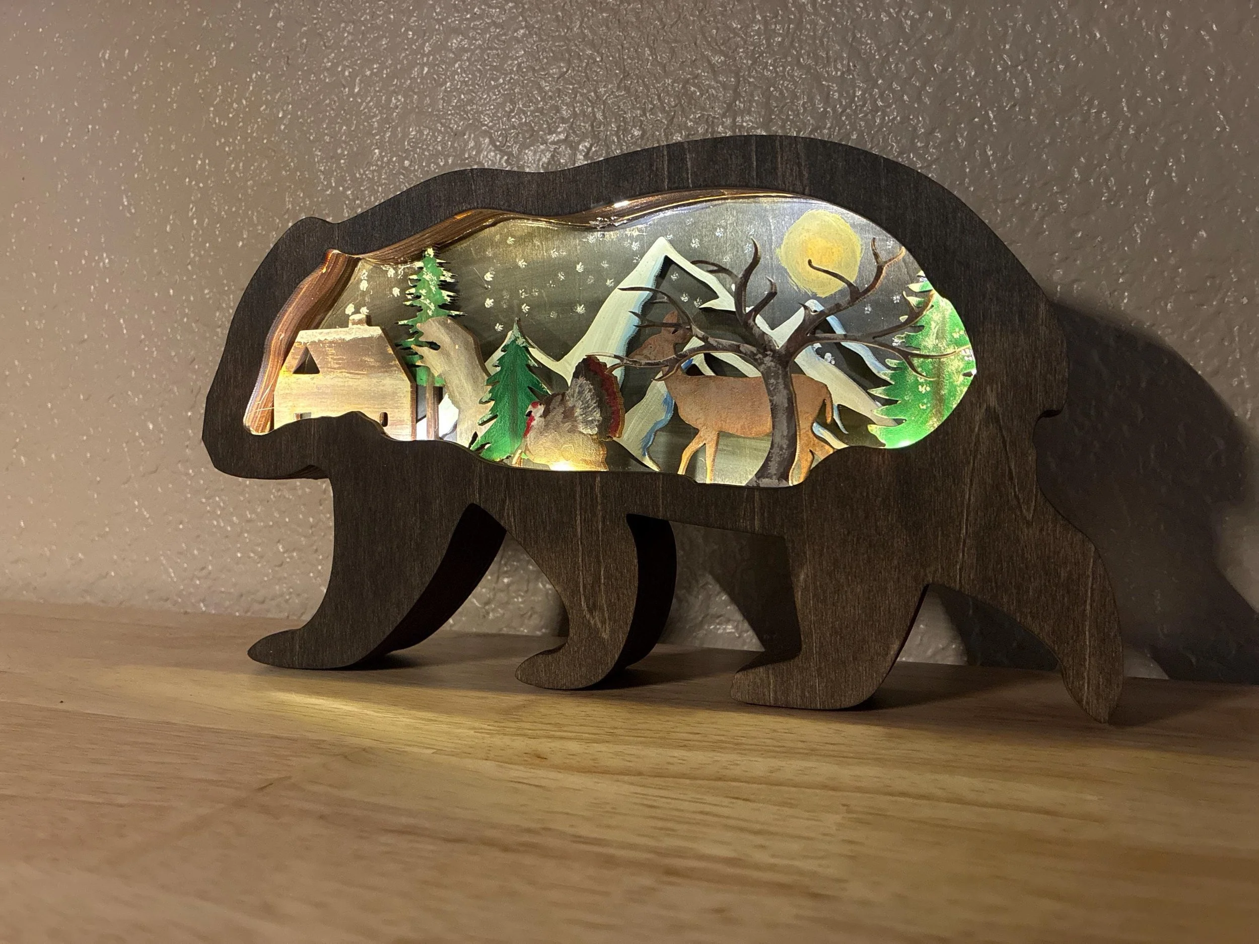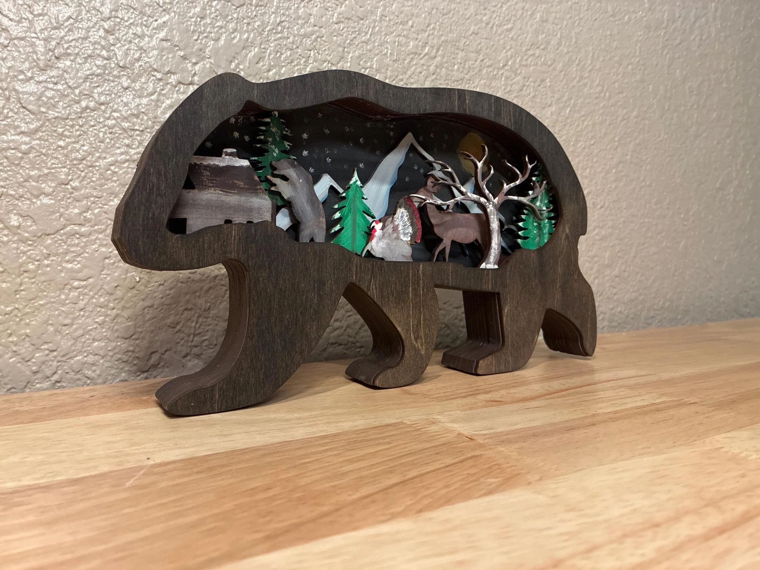 Shop Categories: All 3D Art All | 3D Art | Santa Claus Sale Price: $55.00 Original Price: $85.00 Sale Gift Card from $25.00 Bring nature indoors with this lighted 3D handcrafted bear $85.00 Sold out A Safari in Every Layer – 3D Elephant Wood Art $85.00 Bring the wilds indoors with this 3D handcrafted bison $85.00 Bring nature indoors with this lighted 3D handcrafted bear $85.00 Nativity scene, Christmas tree, laser cut 3D handcrafted $100.00 Bring the wilds indoors with this 3D handcrafted owl $85.00 Sold out Handcrafted 3D Layered Wood Pig – Rustic Farmhouse Wall Art $85.00 Handcrafted 3D Layered Wood Goat – Rustic Farmhouse Wall Art $85.00 3 piece Christmas Tree nativity set $175.00 Bring nature indoors with this 3D handcrafted bear Sale Price: $55.00 Original Price: $85.00 Sale 3D Layered Owl $85.00